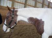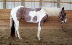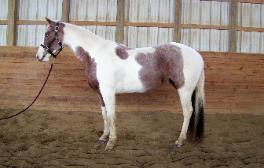 Jaz. Red roan tobiano, going well under saddle,